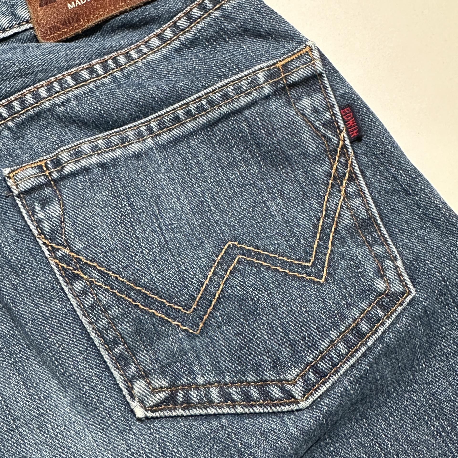 정말정말 탄탄하고 좋은 원단에 봉제도 멋진 청바지 입니다. MADE IN JAPAN이에요. 정말 멋진 청바지인데 무릎부분이 색이 빠지고 엉덩이부분에 원단이 올이 풀려서 직접 다시 집어넣고 수선했습니다.