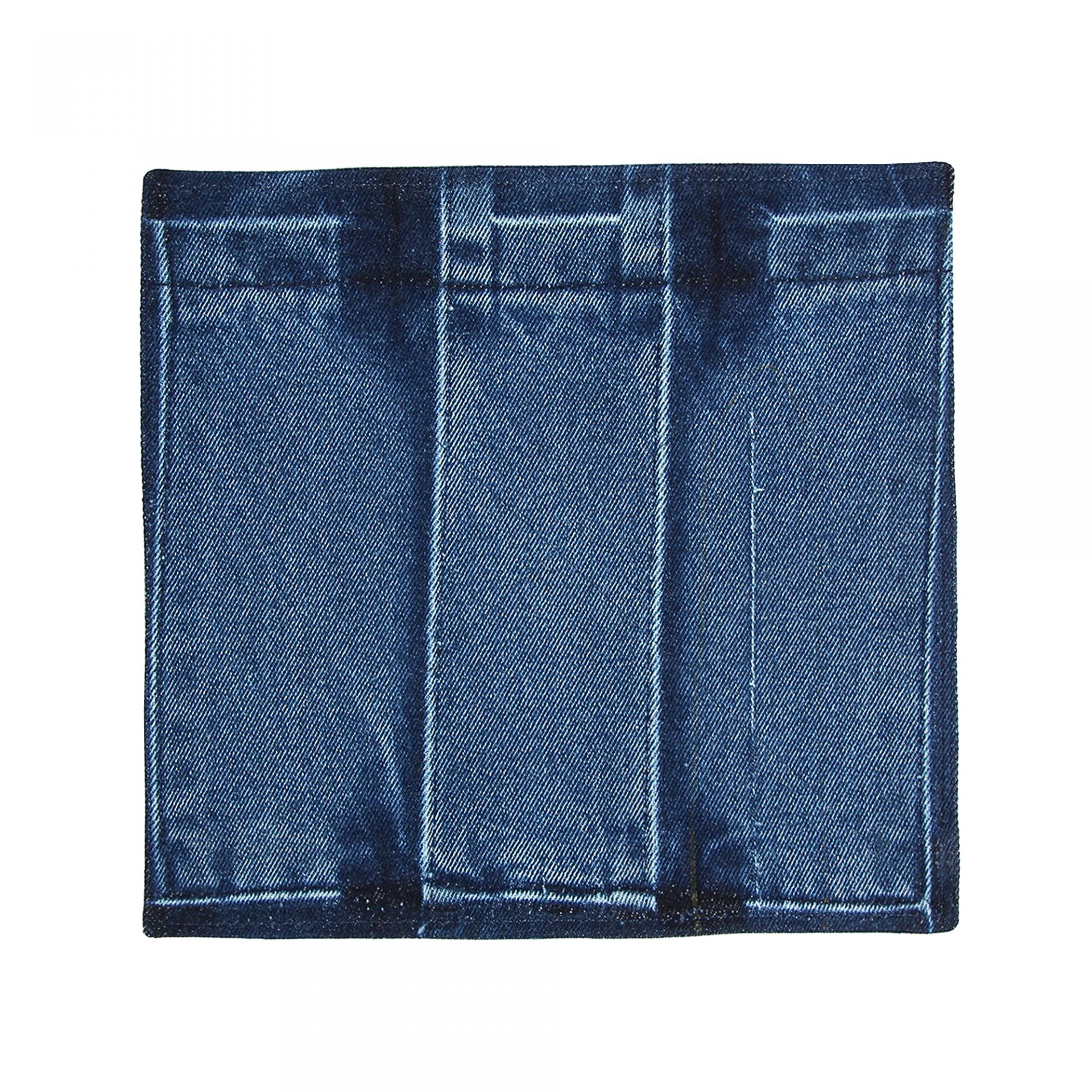 큰 주머니를 해체해 그대로 제작한 매트입니다. 올이 한 줄 나가있어서 불량품으로 분류되어 새상품 그대로 입고된 청바지였습니다. 워싱이 아주 멋지지요! 뒷면은 작업실에 있던 자투리 원단을 사용했습니다. 뒷면 원단은 이염될 수도 있습니다.