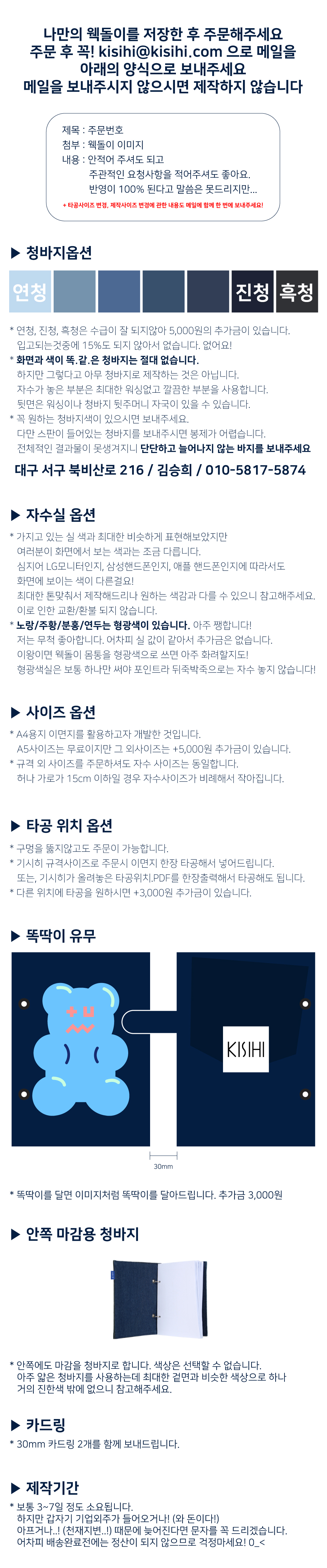 * kisihi.com/ewek에서 만든 웩돌이 그대로 자수를 넣어서 A5 이면지 노트 커버를 제작할 수 있습니다.