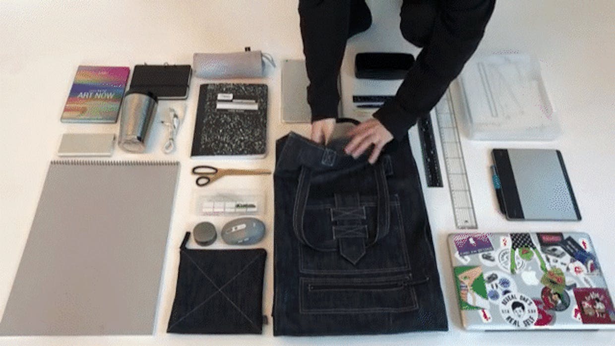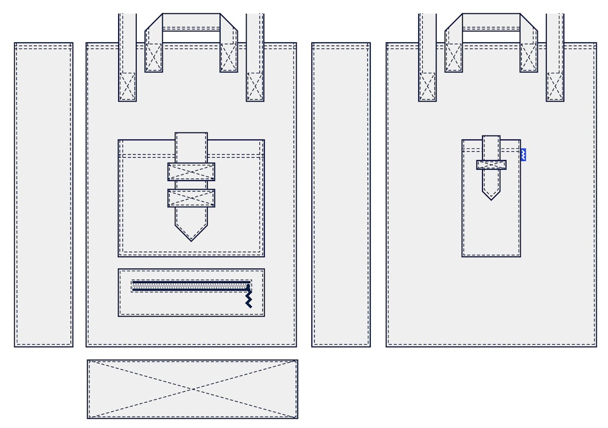 이 가방을 디자인한 2015년의 저는 패션디자인과 2학년 학생이었고, 2학년이 되면 필수로 들어야 하는 패턴수업엔 A3파일을 수업 때마다 필요로 했습니다. 수업도중에 뜬 패턴과 과제로 뜬 패턴을 A3파일에 보관해야했기 때문이죠. 봉제결과물도 파일에 넣어야 했습니다. A3자체만으로도 사이즈가 큰데 봉제결과물도 넣어야 하니 파일은 늘 빵빵해 손으로 들고다니기가 매우 번거로웠습니다. 잘못보고 거꾸로 들면 종이가 쏟아져서 일일이 펼쳐보고 맞는 곳에 다시 집어넣는 수고스러움도 있었고요.