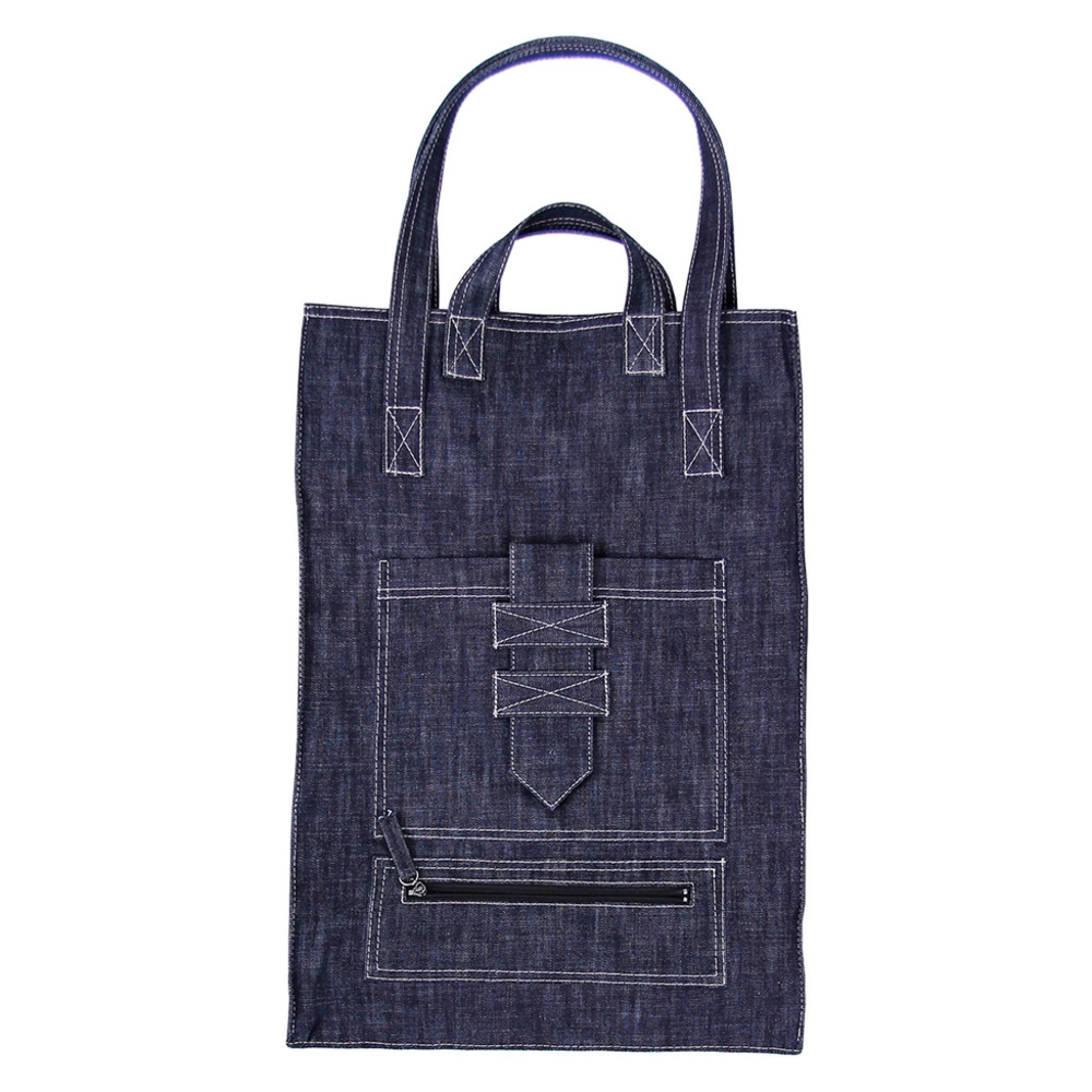 기시히는 환경에 해가 가지 않는 선에서 활동을 하리라 다짐했습니다만, 이 가방은 2015년에 디자인 한 가방으로 새 원단으로만 제작이 가능합니다. 디자인 특성상 청바지 자르고 이어 제작하기에는 최소한 바지가 3벌은 필요하고, 많이 무거워 지기 때문입니다. 또, 환경에 덜 해롭게 염색이 된 원단도 사용할 수 없을 것 같습니다. 이 가방에 적합한 원단은 뻣뻣하면서도 비교적 얇은 원단인데요. 저는 가방의 완성도를 위해 염색공법보다 가방에 더 적합한 원단을 찾아야 합니다.